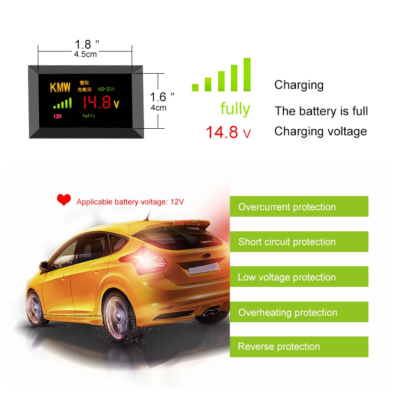 Related Product for Intelligent 12V 10A Automobile Car Motorcycle LED Digital Display Battery Charger 110V-240V for Sma